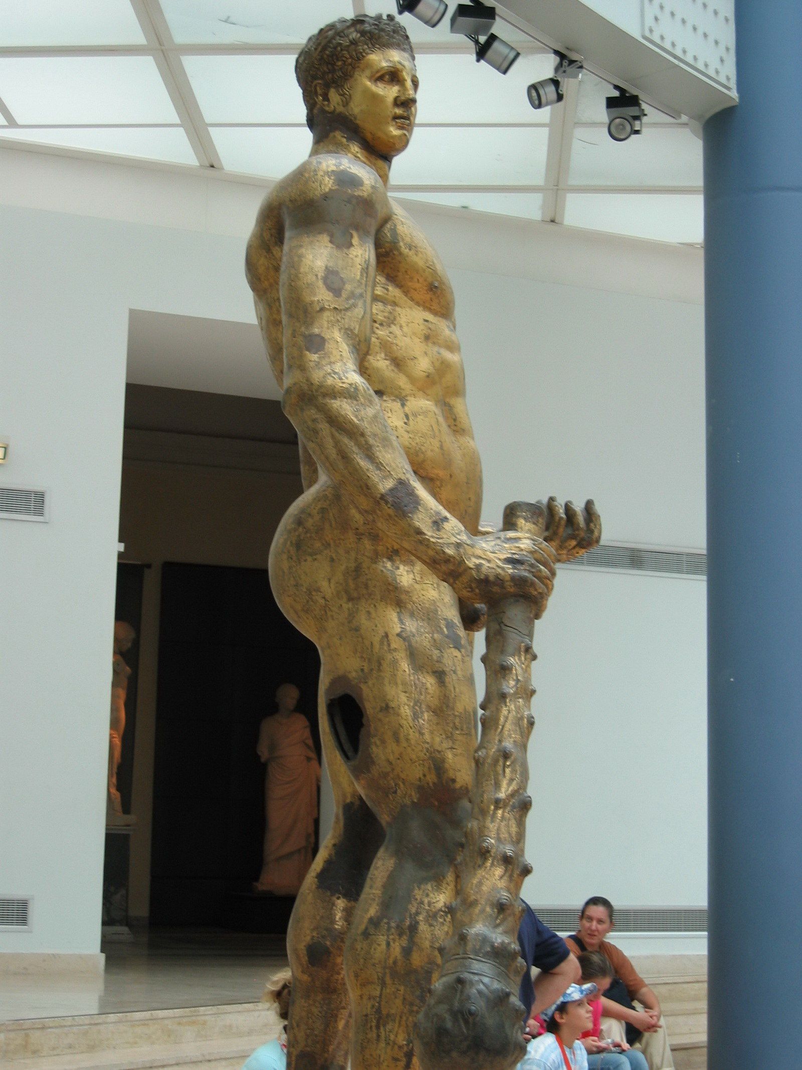 The gilt bronze statue of Hercules in the Capitoline Museum in Rome shows him whit the golden apple of the Hesperides in his left hand, a fruit that is also associate to Heracles in the Greek myth for his eleventh labors. Yes, yes… as in the 12 Labors of Hercules… the Greek and Roman mythologies are based on similar stories and sometimes it’s difficult to follow who is who, roman myths were often inspired by the Greek ones.