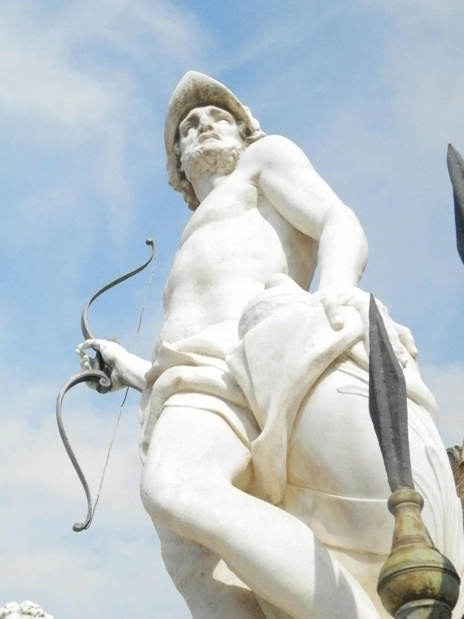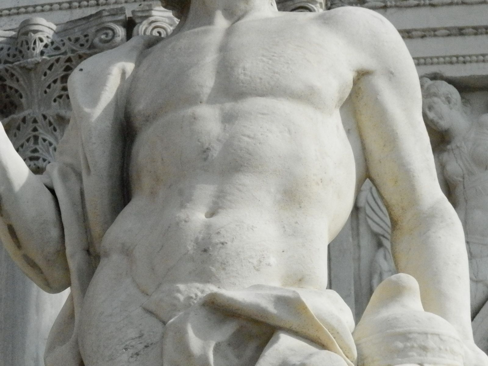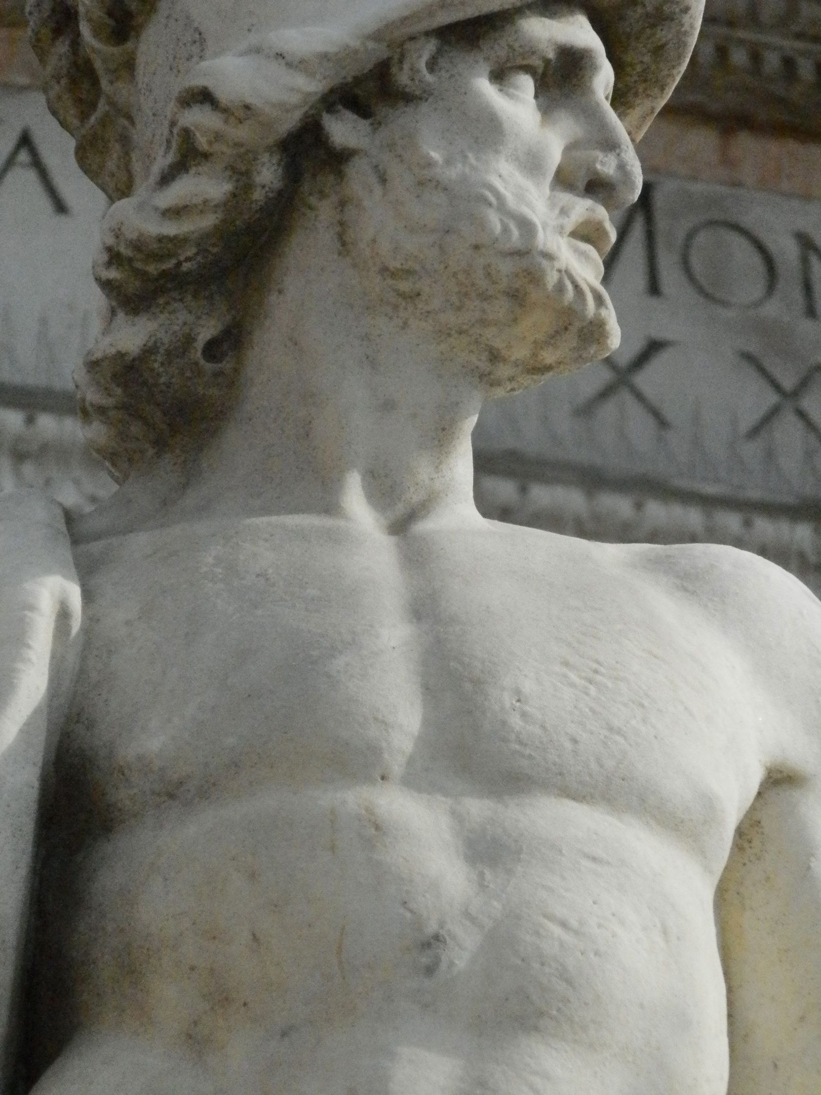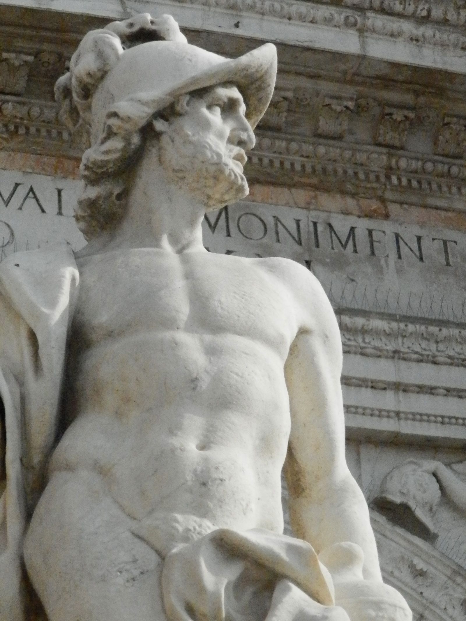 Mars à la Porta Magna est une représentation du dieu de la guerre d’une grande beauté masculine et puissante, inspirant la force de la guerre. Il est, chez les Romains, le père de Romulus et Remus et chez les Grecs il est le fils de Zeus et Héra et porte le nom d’Arès. Ce Mars ou encore Arès est l’une des statues gardant la Porta Magna de l’Arsenal de Venise parmi les lions et une statue de Neptune l’autre gardien de cette porte.