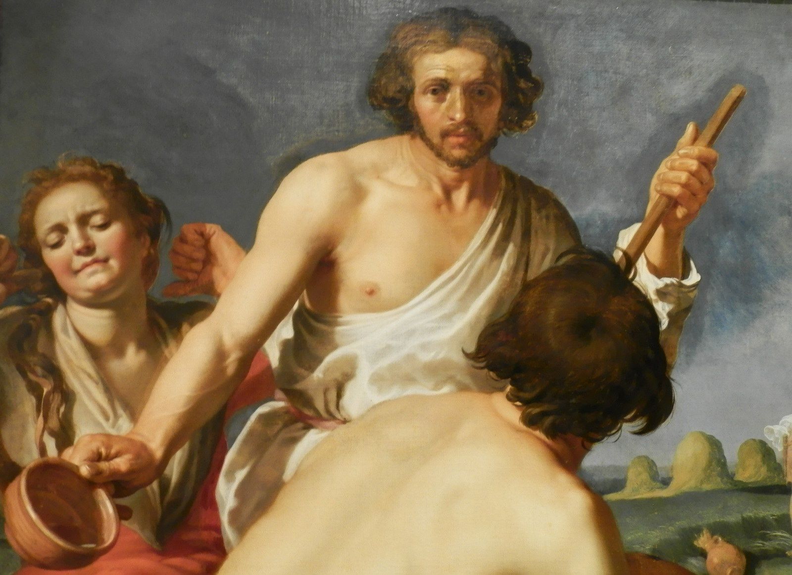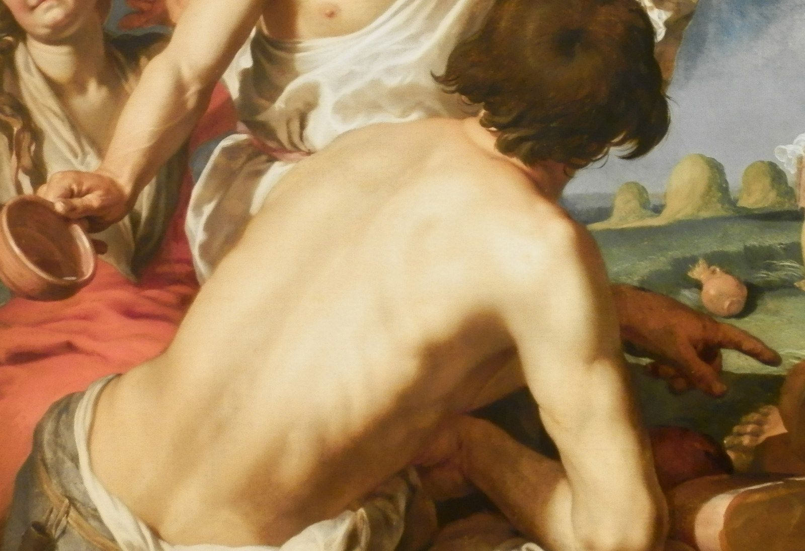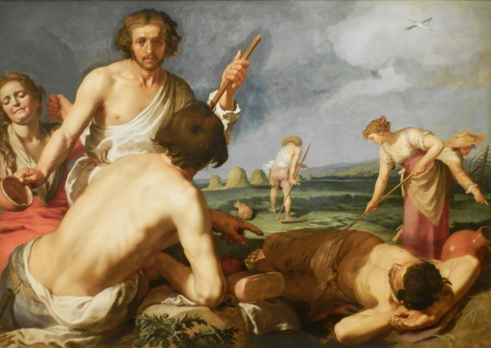 Rentrée de la moisson d’Abraham Bloemaert, vers 1625-1630. D’abord maniériste évoluant vers le classicisme, ce peintre hollandais eut une période caravagesque suite au contact à ce style vers 1620. Ce tableau issu de sa transition vers le classicisme contient des éléments toujours influencés par Le Caravage. Malgré l’absence clair-obscur de cette oeuvre, la lumière en plongée sur cette femme rehausse les traits et les rondeurs de son visage rappelant le style caravagesque qui met en évidence les défauts de ses sujets, malgré leur grande beauté dans certains cas, augmentant le réalisme de leur physionomie.