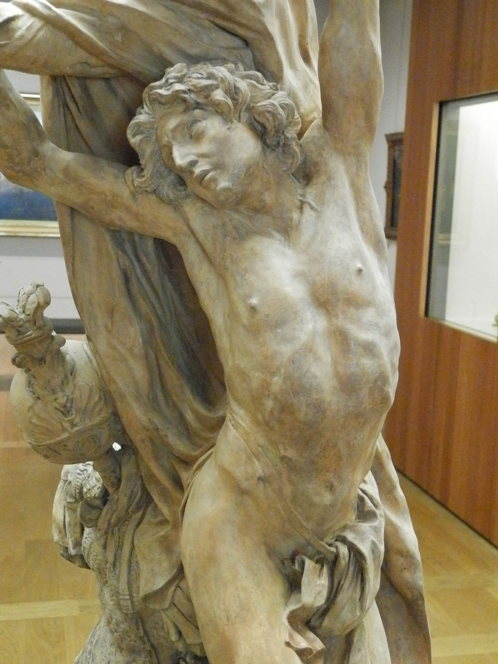Cette sculpture de Saint-Sébastien est une ébauche en terre cuite du marbre de Santa Maria Assunta di Carignano à Gêne. On peut voir cette oeuvre de Pierre Puget au Petit Palais à Paris. Ce dernier adulé comme le Michel-Ange Français est un peintre et sculpteur Marseillais du 17ième siècle.